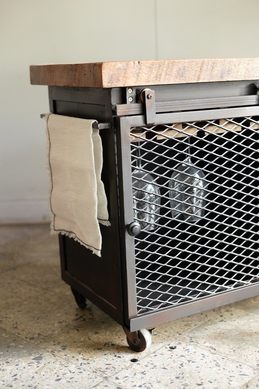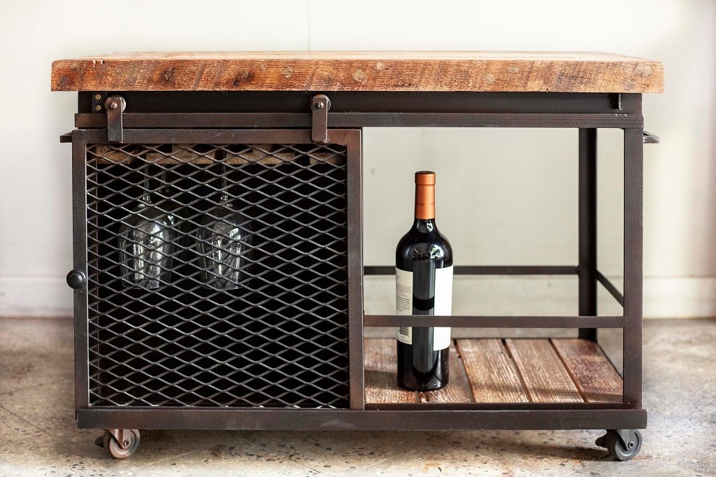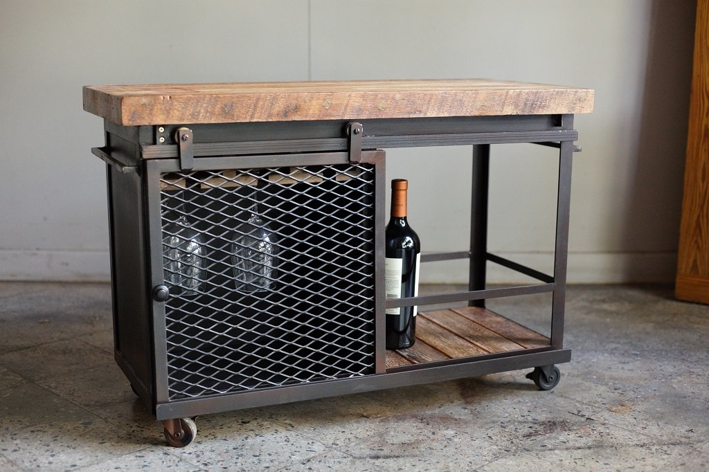 Aparador rustico de madera maciza de pinotea y estructura de hierro