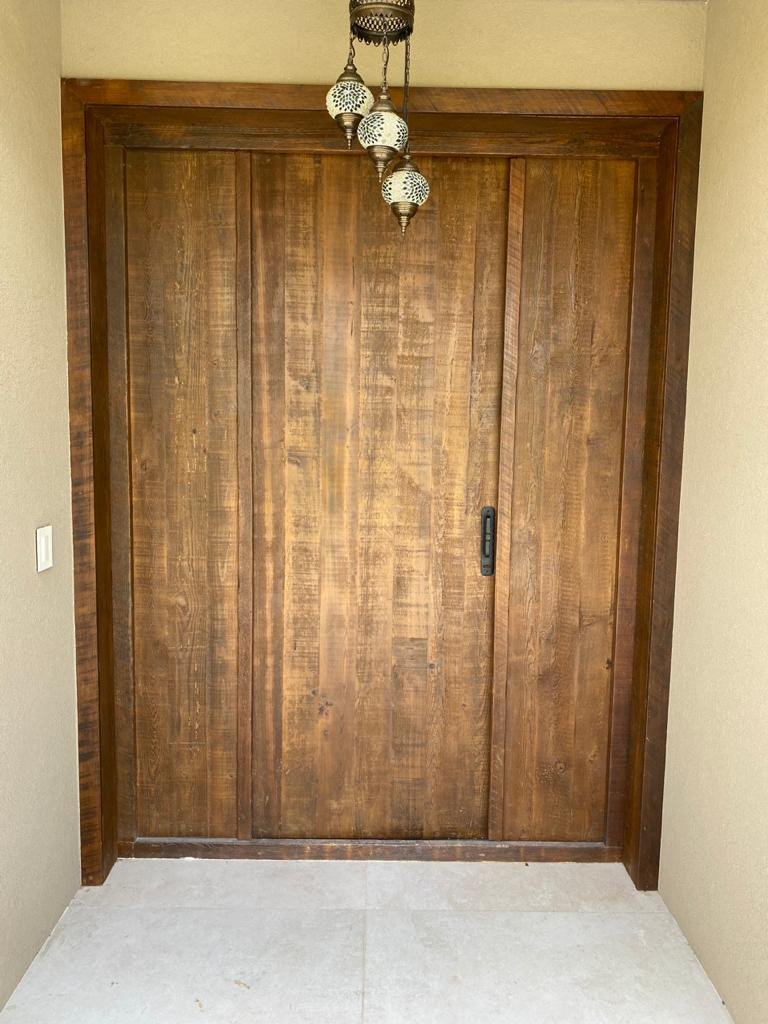 Esta puerta no solo sirve como una entrada o separador de espacios, sino que también agrega carácter y singularidad a cualquier ambiente. Su presencia evoca la sensación de un hogar con historia, una conexión con el pasado y un enfoque en la sostenibilidad.